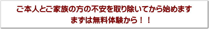 ご本人とご家族の方とお話をさせていただきまして、無料体験(約20分)を受けていただきます。