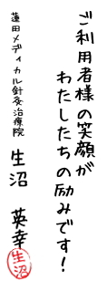 当施術院はご本人だけではなくご家族の方も含めた、皆様が元気でいられるようサポートしてまいります。